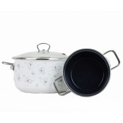 Elegancki garnek emaliowany z linii PREMIUM White to idealne połączenie klasycznego wzornictwa z nowoczesną funkcjonalnością. Wykonany z wysokiej jakości stali o grubości 2 mm i pokryty wyjątkowo trwałą emalią ETC (Easy To Clean), zapewnia zdrowe, energooszczędne i komfortowe gotowanie na co dzień. Kwiatowy motyw w odcieniach szarości i biała emalia zewnętrzna dodają mu ponadczasowej estetyki, która ozdobi każdą kuchnię. Idealny na prezent – pakowany w eleganckie pudełko.