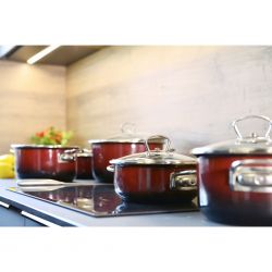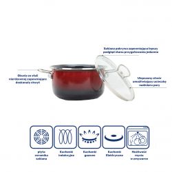 Garnek PREMIUM OMBRÉ red to doskonałe połączenie nowoczesnego designu, trwałości i zdrowego gotowania.