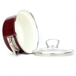 Rondel ECO-CERAMIC marki BELIS to połączenie nowoczesnego designu z funkcjonalnością i ekologicznym podejściem do gotowania. Wykonany z wysokiej jakości stali emaliowanej o grubości 1,0 mm, zapewnia trwałość i długą żywotność. Dwukolorowa emalia – bordowa na zewnątrz i jasnokremowa wewnątrz – jest odporna na zarysowania, łatwa w czyszczeniu i bezpieczna dla zdrowia. Szklana pokrywka z otworem odprowadzającym parę umożliwia wygodne kontrolowanie potraw. Naczynie nadaje się do wszystkich rodzajów kuchenek, w tym indukcyjnych, oraz do mycia w zmywarce.