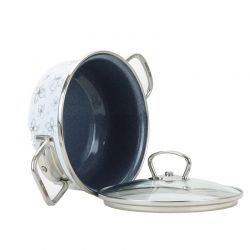 Rondel z serii PREMIUM White marki BELIS to połączenie klasycznego wzornictwa z nowoczesną funkcjonalnością. Wykonany z wysokiej jakości stali o grubości 2 mm, pokrytej trwałą, łatwą w czyszczeniu emalią ETC (Easy To Clean), zapewnia równomierne rozprowadzanie ciepła i zdrowe gotowanie bez przypalania. Wewnętrzna ciemnoszara emalia jest odporna na zarysowania, a szklana pokrywka z otworem odprowadzającym parę zwiększa komfort gotowania.