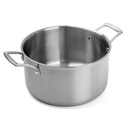 Trójwarstwowa konstrukcja: stal nierdzewna – aluminium – stal nierdzewna, zapewniająca doskonałe przewodzenie ciepła i wytrzymałość.