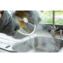 Pokrywka z hartowanego szkła: umożliwia kontrolę gotowania bez podnoszenia pokrywki i utraty ciepła.
