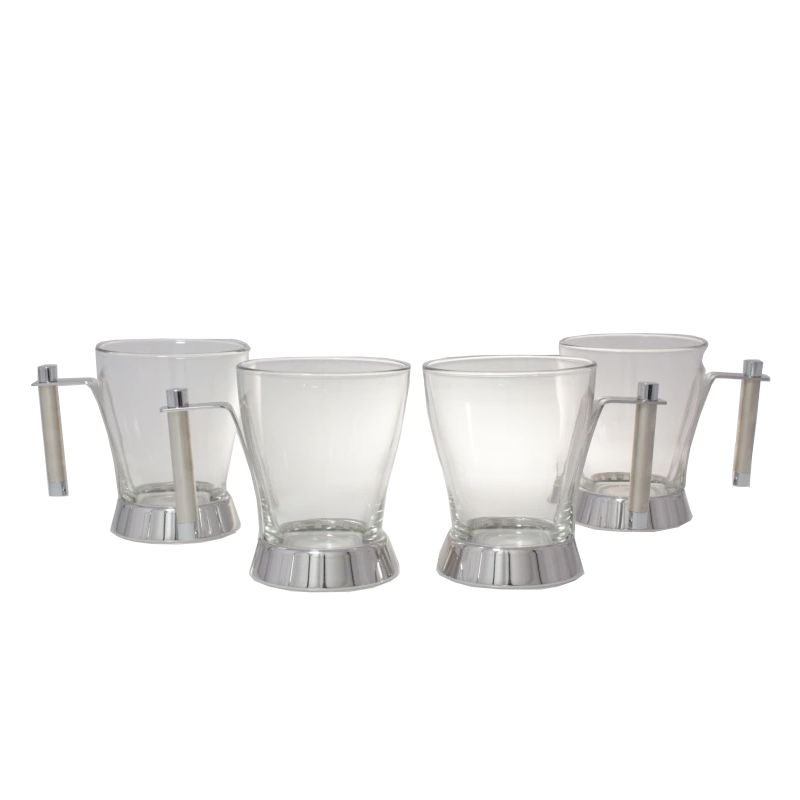Elegancki komplet 6 szklanek Perle marki Regent to zestaw idealny zarówno do użytku domowego, jak i w profesjonalnych lokalach, takich jak hotele czy restauracje. Szklanki umieszczone są na metalowej podstawie z wygodnym uchem, które nie nagrzewa się podczas kontaktu z ciepłymi napojami, zapewniając komfort i bezpieczeństwo użytkowania. Starannie wykonane z wysokiej jakości szkła i stali nierdzewnej, prezentują się wyjątkowo efektownie na każdym stole. Cała kolekcja Perle pozwala na tworzenie spójnych i funkcjonalnych zestawów, które zachwycają estetyką i ergonomicznym designem.
