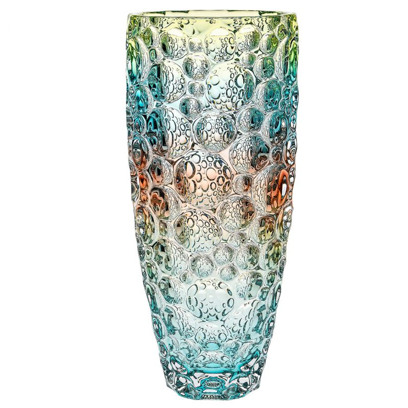 Wazon kryształowy BOHEMIA Jihlava Lisboa Mix Colors 350 mm to wyjątkowy element dekoracyjny, który łączy w sobie elegancję tradycyjnego szkła kryształowego z nowoczesnym wzornictwem. Wykonany z najwyższej jakości kryształu, zachwyca swoją przejrzystością, trwałością oraz unikatową grą barw. Dzięki efektownemu wykończeniu w mieszanych kolorach, wazon staje się nie tylko praktycznym naczyniem na kwiaty, ale również wyrazistą ozdobą wnętrza.