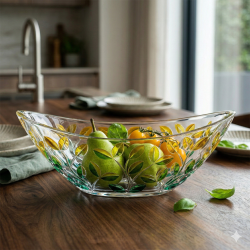 Dekoracyjna salaterka Misa Owalna Laurous Summer to elegancki element wystroju wnętrza, wykonany z najwyższej jakości bezołowiowego szkła kryształowego Luxion, które jest w pełni ekologiczne i nadaje się do recyklingu. Szkło charakteryzuje się wyjątkową przejrzystością oraz pięknym, intensywnym połyskiem.
