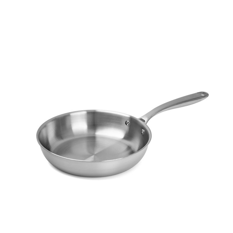 Ergonomiczny uchwyt jest solidnie przymocowany nitami, dobrze leży w dłoni i pozostaje chłodny podczas gotowania. Zakrzywiona krawędź pozwala na wygodne przelewanie sosów i soków bez kapania i bałaganu.