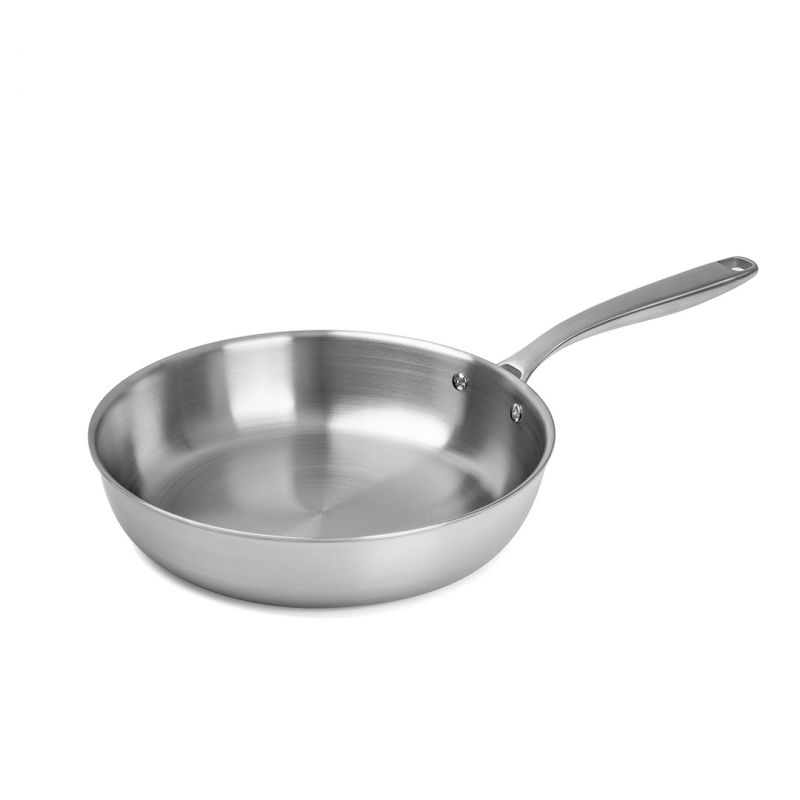 Ergonomiczny uchwyt jest solidnie przymocowany nitami, dobrze leży w dłoni i pozostaje chłodny podczas gotowania. Zakrzywiona krawędź pozwala na wygodne przelewanie sosów i soków bez kapania i bałaganu.