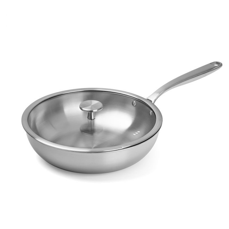 Trójwarstwowa konstrukcja – stal nierdzewna z aluminiowym rdzeniem dla szybkiego i równomiernego nagrzewania.
