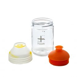 Szklana butelka, mini shaker z kolorową silikonową wkładką oraz transparentną zakrętką została wykonana z wysokiej jakości szkła hartowanego. Dzięki silikonowemu wkładowi, butelka jest bardzo szczelna; idealnie nadaje się do przygotowywania sosów, dipów, dressingów, przechowywania oleju, oliwy i płynnych przypraw; można stosować także do przygotowywania posiłków dla dzieci. Szklana butelka jest przyjazna dla środowiska (podlega recyklingowi) oraz dla użytkowników (nie zawierają Bisfenolu A - BPA i estrogenów).