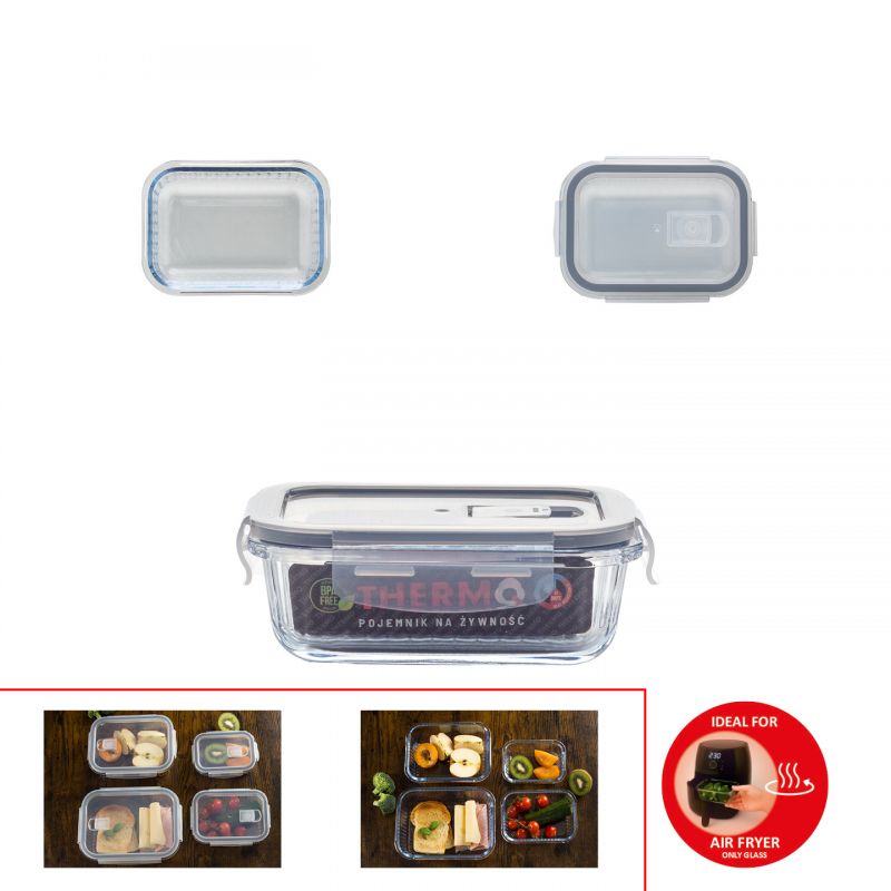 Thermo Pojemnik na Żywność Szklany Prostokątny 380 ml – Hermetyczny Lunchbox z Uszczelką