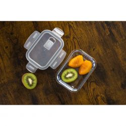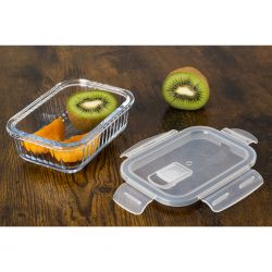 Nowoczesny design z ryflowanym szkłem nie tylko świetnie się prezentuje, ale również zwiększa trwałość pojemnika. Funkcjonalny, prostokątny kształt pozwala na wygodne przechowywanie – pełne pojemniki można układać jeden na drugim, a puste wkładać jeden w drugi, oszczędzając miejsce.