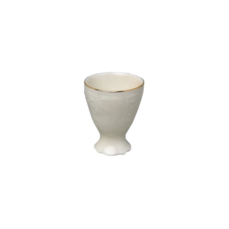 Wyjątkowy kieliszek do jajka z kolekcji BERNADOTTE to połączenie elegancji, tradycji i najwyższej jakości porcelany karlowarskiej. Wykonany przez renomowaną czeską manufakturę Thun, zachwyca klasycznym wzornictwem, delikatną kością słoniową oraz subtelnym, złotym zdobieniem. Idealny dla miłośników wyrafinowanego stylu przy stole.