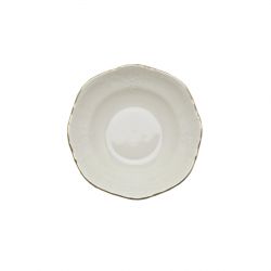Miska sałatkowa Bernadotte o średnicy 13 cm to połączenie wysokiej jakości białej porcelany z wyjątkowym, wypukłym wzorem koronki oraz elegancką, złotą obwódką. Idealna do serwowania sałatek, przystawek czy drobnych przekąsek, doda klasy każdemu stołowi, podkreślając wyjątkowy charakter aranżacji.
