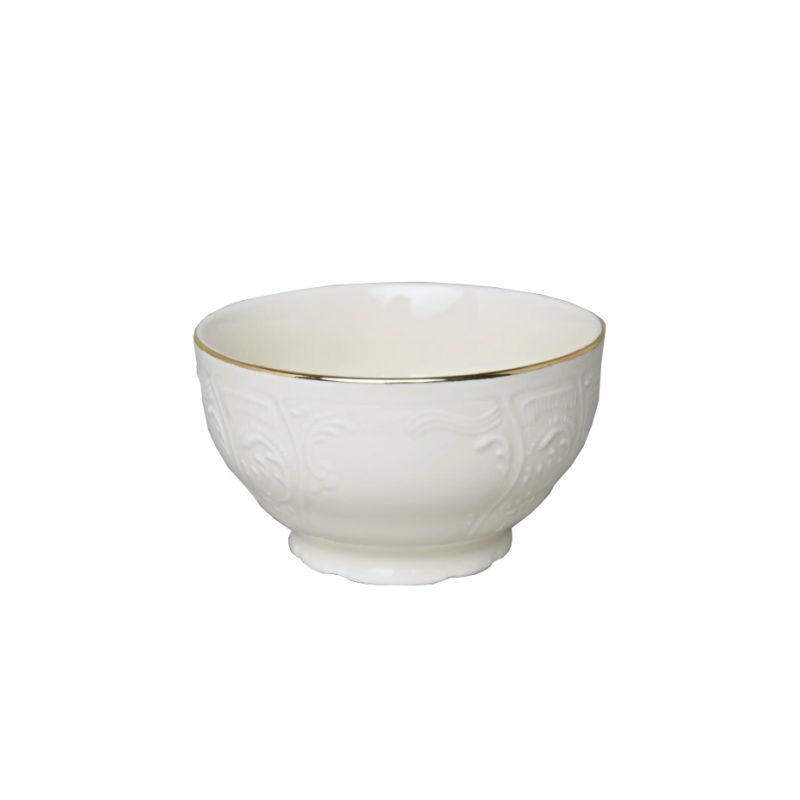 Bernadotte Ivory Gold to kolekcja porcelany o klasycznym, ponadczasowym designie, która doskonale odnajdzie się zarówno na codziennym stole, jak i podczas wyjątkowych okazji. Miska na ryż o średnicy 13 cm wykonana została z wysokiej jakości białej porcelany, ozdobionej delikatnym reliefem oraz złotym rantem, nadającym całości szlachetnego charakteru.