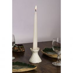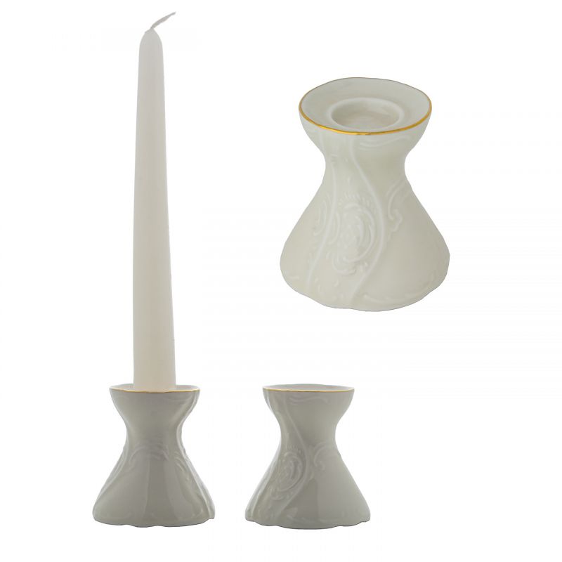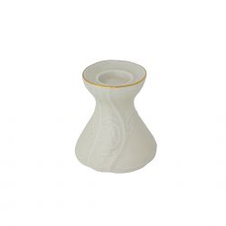Bernadotte Ivory Gold to elegancki świecznik wykonany z wysokiej jakości białej porcelany, którego wzornictwo inspirowane jest klasyczną kolekcją Bernadotte. Jego powierzchnię zdobi delikatny, wypukły motyw koronki, a całość została wykończona złotą obwódką, nadającą mu wyjątkowego charakteru. To ponadczasowy dodatek, który sprawdzi się zarówno jako uzupełnienie eleganckiej zastawy stołowej, jak i samodzielna dekoracja nadająca wnętrzu wyrafinowanego stylu.
