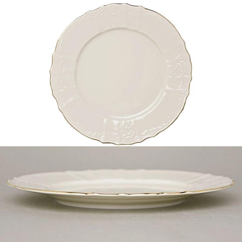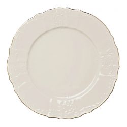 Elegancki talerz obiadowy z kolekcji BERNADOTTE Ivory Gold to wykwintna propozycja dla miłośników klasycznego stylu i wysokiej jakości porcelany. Wykonany z porcelany, talerz łączy w sobie szlachetny odcień kości słoniowej z subtelnym złoceniem, tworząc niepowtarzalny klimat elegancji przy każdym posiłku.