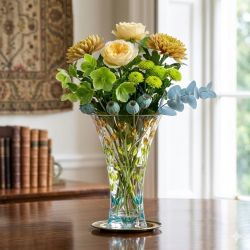 Dekoracyjny wazon Laurous Summer wykonany z ekologicznego szkła kryształowego Luxion, to elegancki i wszechstronny dodatek do wnętrz. Charakteryzuje się wyjątkowym wzorem kolorowych liści, które przechodzą w gradient wielobarwnych odcieni, nadając mu nowoczesny i wyrafinowany wygląd. Wazon doskonale nadaje się do eksponowania zarówno żywych, jak i sztucznych kwiatów, a także sezonowych dekoracji, takich jak np. gałązki