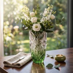 Wazon Kryształowy FLORA GREEN GRADIENT 280 mm – Ekskluzywny Wazon Dekoracyjny do Kwiatów i Wnętrz