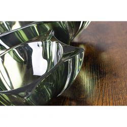 Kryształowa misa BOHEMIA YOKO SMOKEY GREEN o średnicy 21 cm to elegancki element zastawy stołowej, wykonany z najwyższej jakości szkła kryształowego. Jej subtelna, zielona barwa oraz organiczna struktura inspirowana liniami papilarnymi liścia sprawiają, że prezentuje się niezwykle efektownie. Misa idealnie wpisuje się zarówno w codzienne użytkowanie, jak i w wyjątkowe okazje, stanowiąc doskonałą ozdobę stołu lub stylowy dodatek dekoracyjny. Doskonale sprawdzi się do podawania sałatek, przekąsek, owoców lub jako oryginalny element wystroju wnętrza.